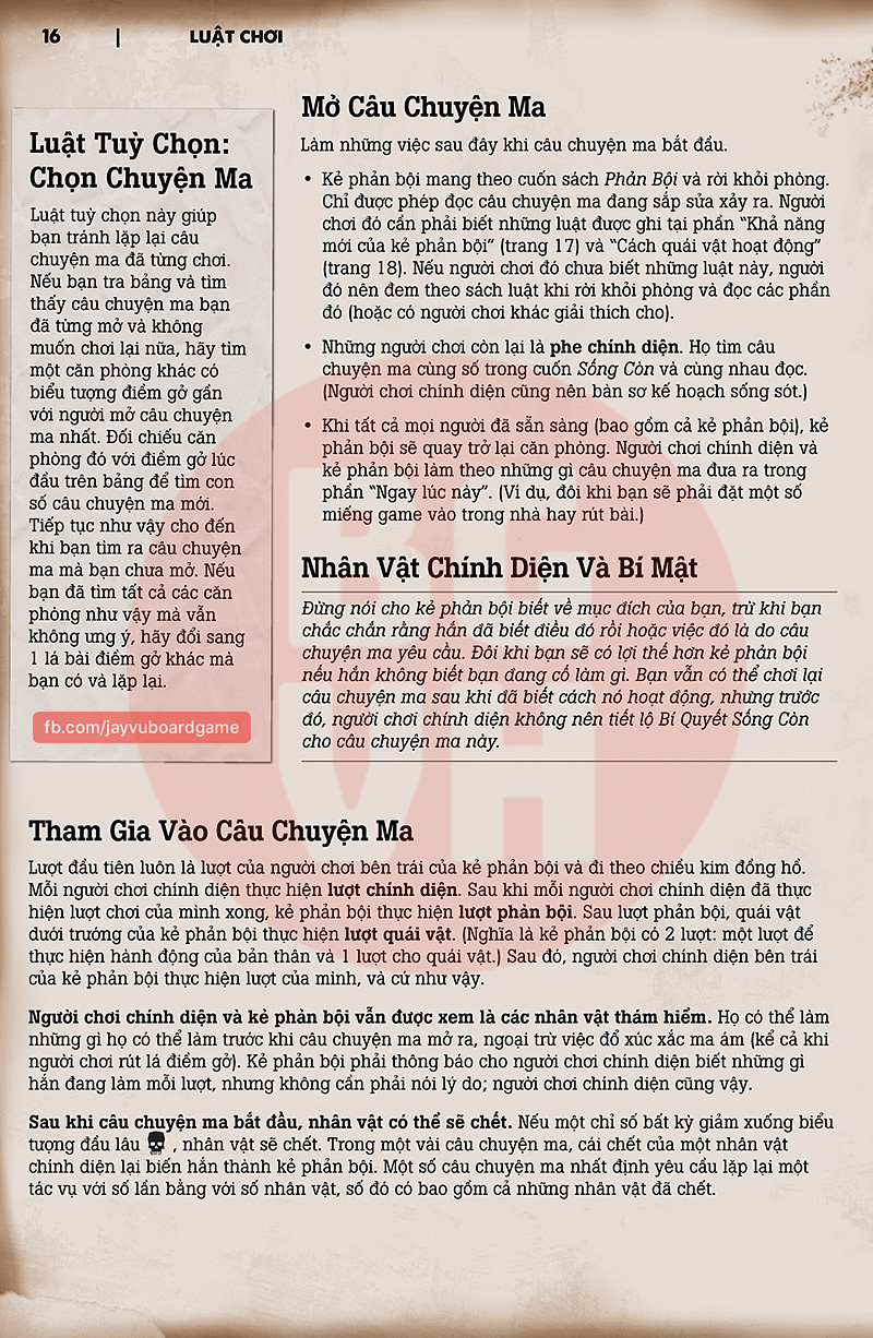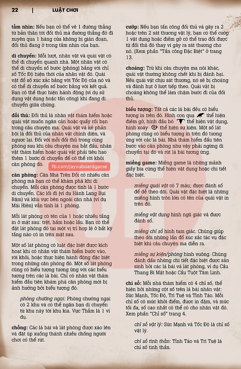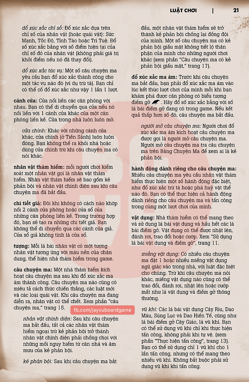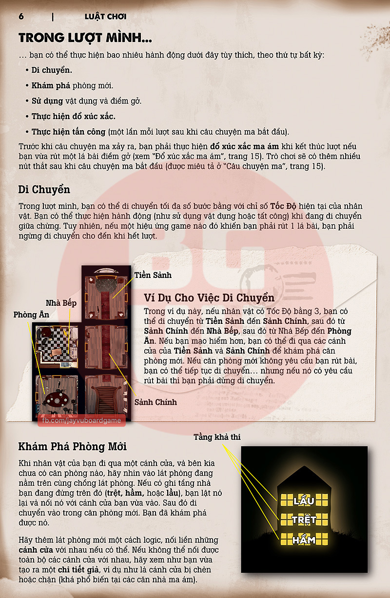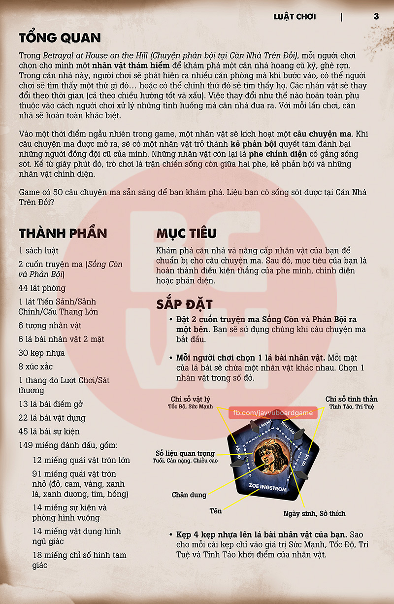 Luật chơi Việt Hoá của Betrayal At House On The Hill – bản base, do Jay thực hiện dựa trên bản tiếng Anh do nhà phát hành công khai chia sẻ.