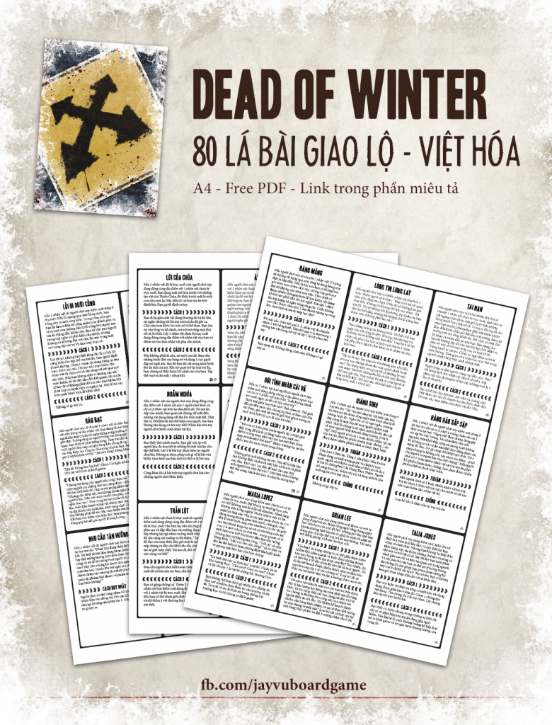 Một trong những khó khăn khi chơi Dead Of Winter là độ phức tạp của những lá bài giao lộ, cũng như tính bí mật của nó khiến người lead game cũng không thể giúp đỡ những bạn yếu tiếng Anh được.