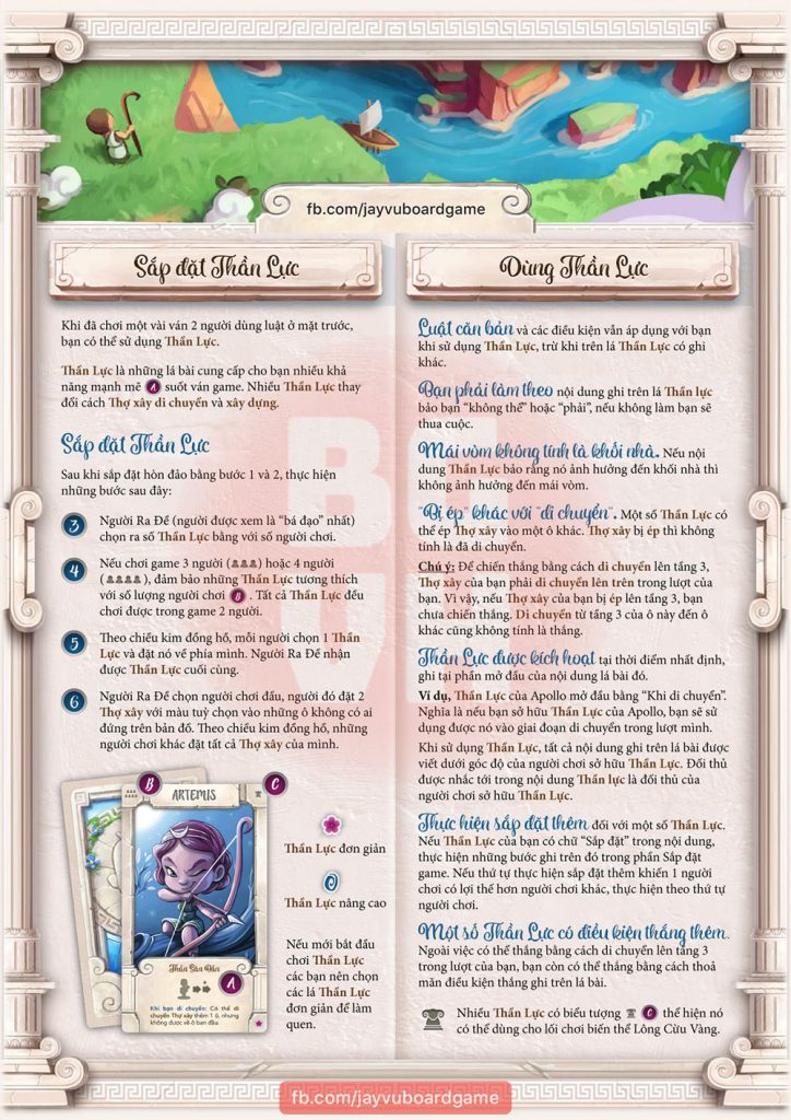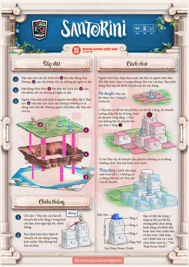 Bản việt hoá luật chơi Santorini do Jay thực hiện, dựa trên bản tiếng Anh của nhà phát hành chia sẻ công khai.